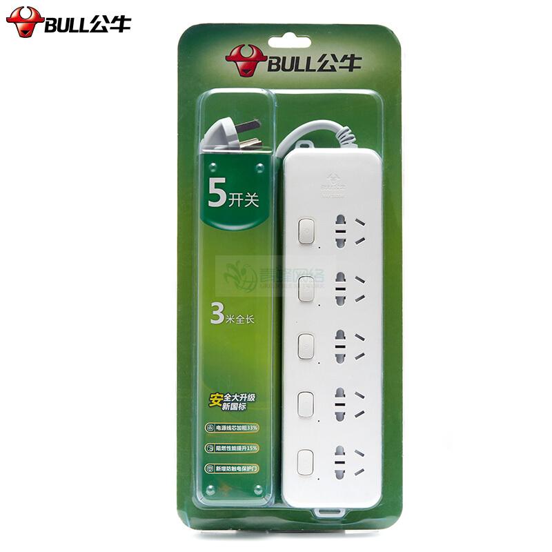 公牛GN-312插座 独立开关 五位3插 3米/5米